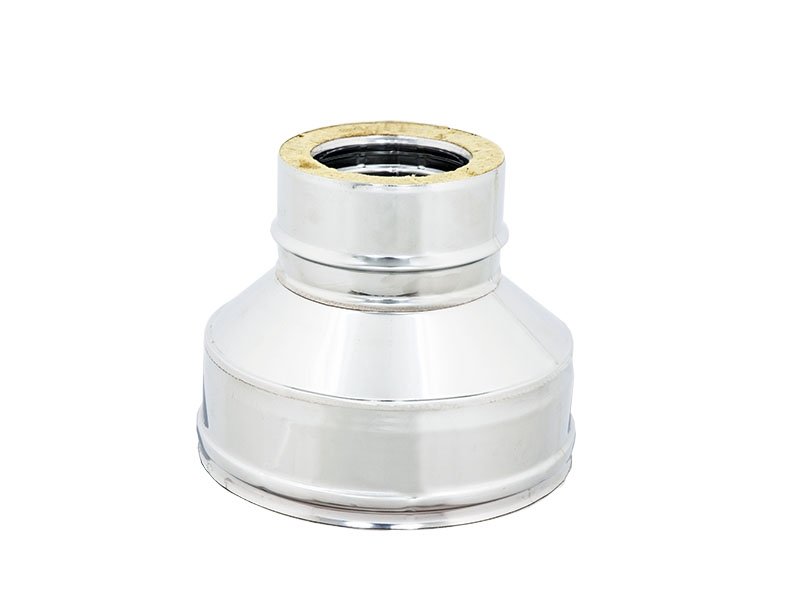 La Riduzione/maggioratore a parete doppia rappresenta il raccordo necessario per ridurre/maggiorare, compatibilmente alla scelta dei diametri gestiti, sub orizzontali o sub verticali di un Sistema Camino secondo la UNI EN 1856-1, o di un canale da fumo.