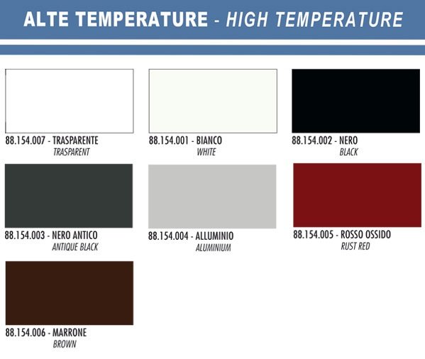 Speciale smalto siliconico resistente alle alte temperature fino a punte di 800°C. Collettori di scarico, testate, canne fumarie, stufe, caldaie, forni e barbeque. Resiste a temperature fino a punte di 800°C.Essicca al tatto in ...