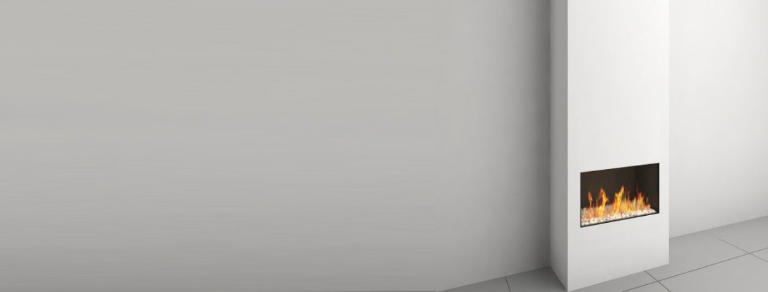 I camini della serie Linea si integrano perfettamente nella parete come elementi di design.