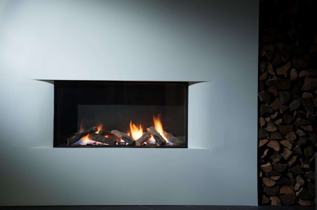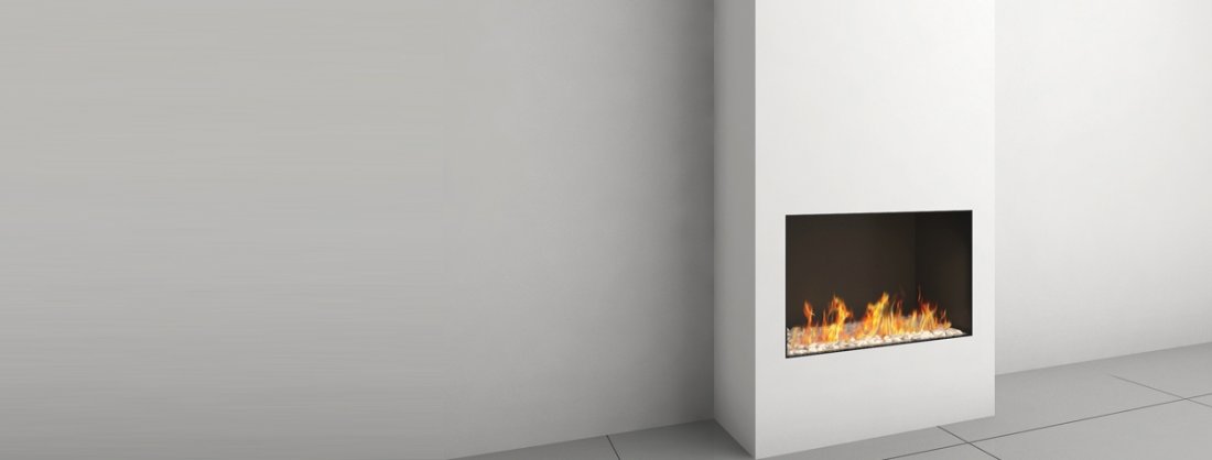 I camini della serie Linea si integrano perfettamente nella parete come elementi di design.