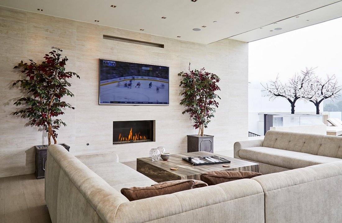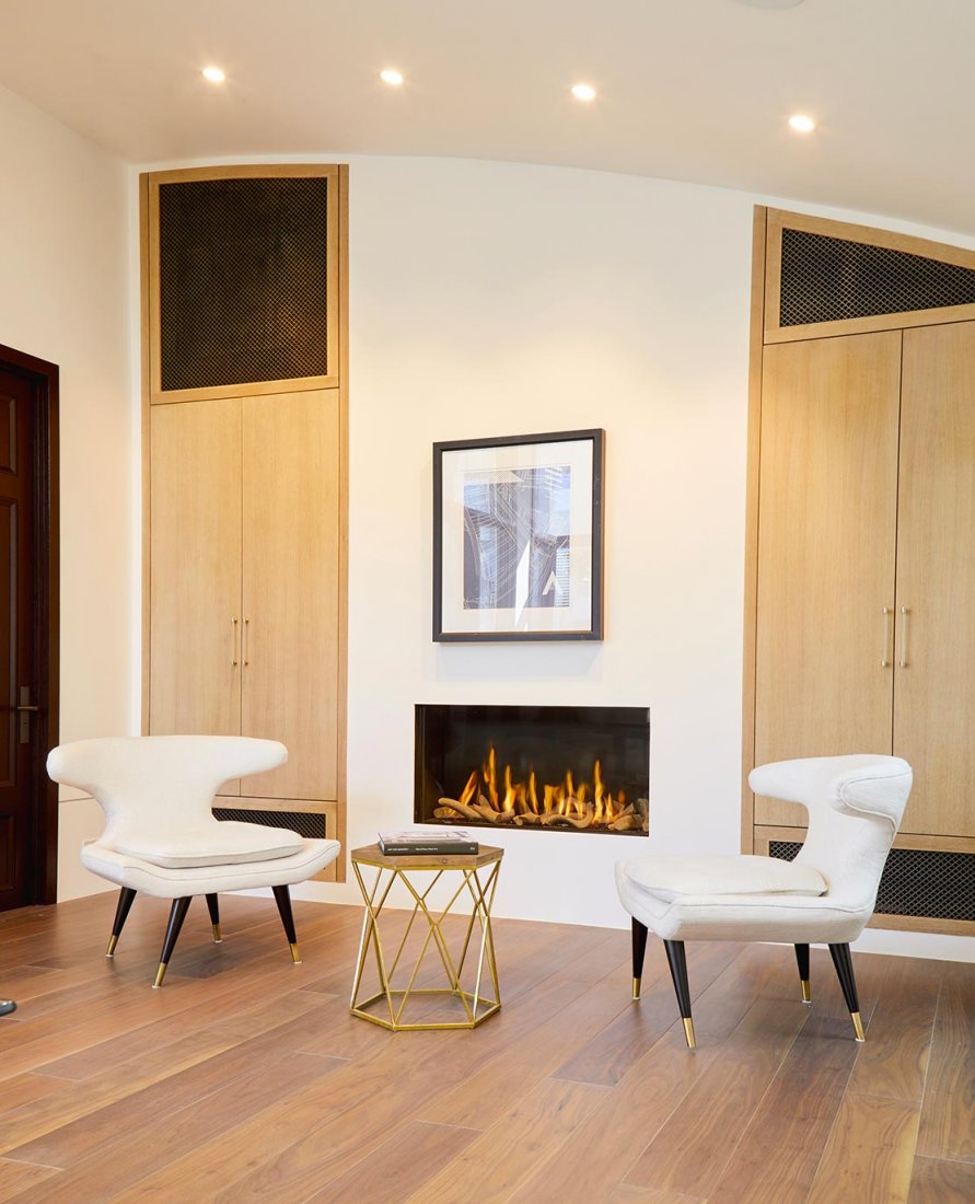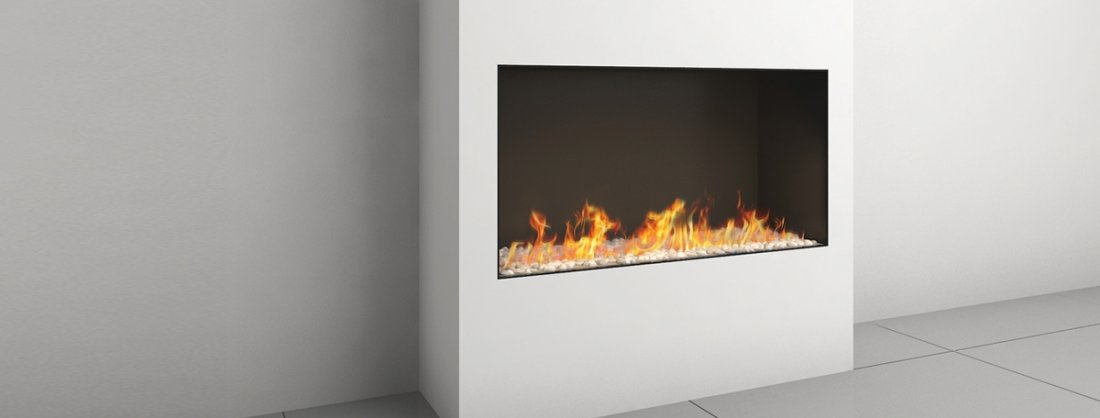 I camini della serie Linea si integrano perfettamente nella parete come elementi di design.