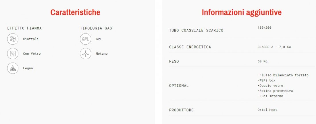 GAS 80 VERTICAL LATERALE DX Descrizione Visione panoramica del fuoco, ridotto uso di parti strutturali a vista Sistema Realistic Fire Plus Funzionamento a gas metano o gpl Sistema alimentazione telecomando: 2 batterie AAA Sistema di ...