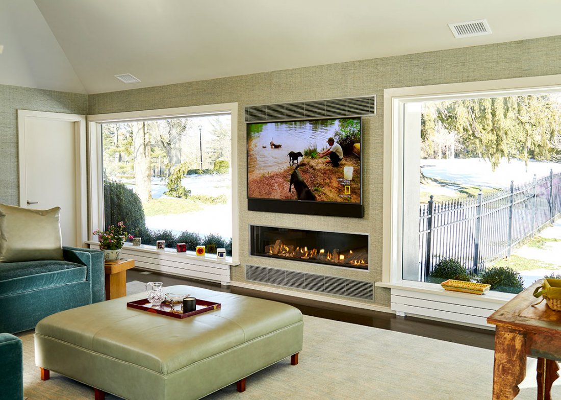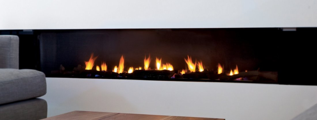 I camini della serie Linea si integrano perfettamente nella parete come elementi di design.