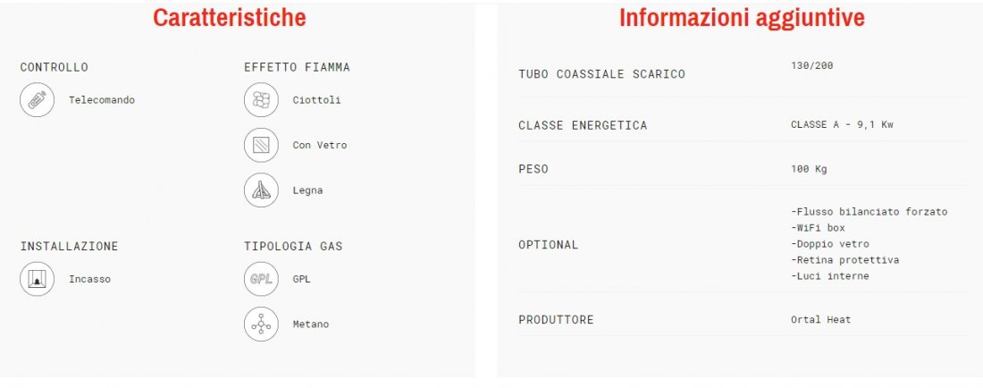 GAS 80 VERTICAL FRONTALE Descrizione Visione panoramica del fuoco, ridotto uso di parti strutturali a vista Sistema Realistic Fire Plus Funzionamento a gas metano o gpl Sistema alimentazione telecomando: 2 batterie AAA Sistema di ...