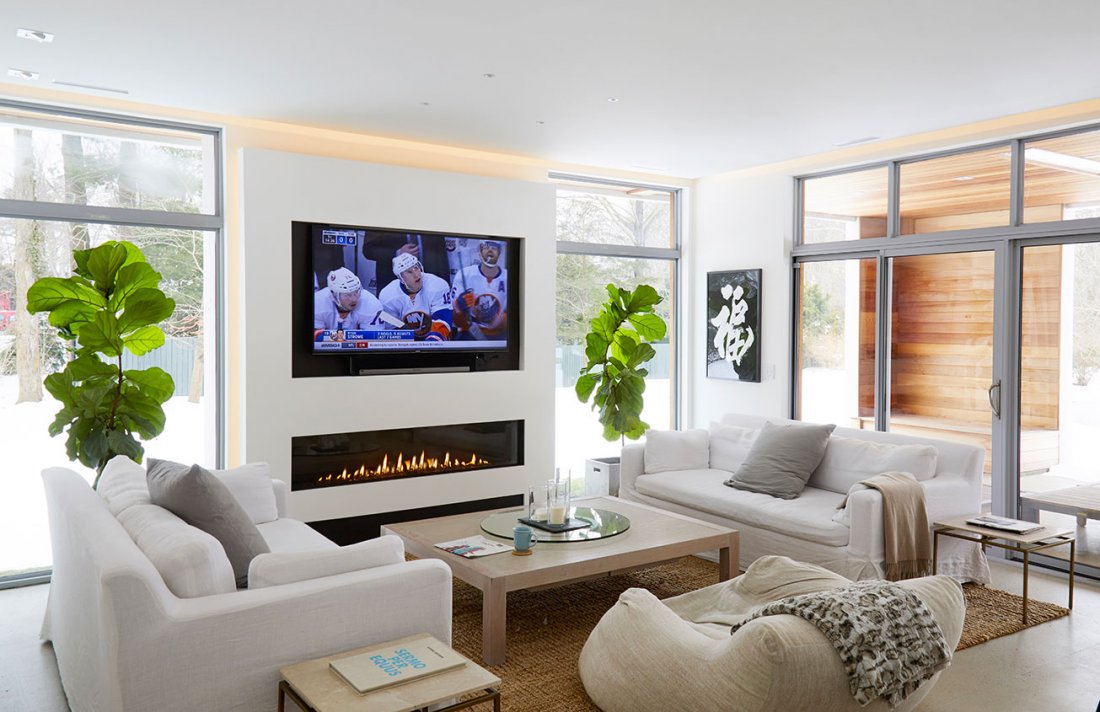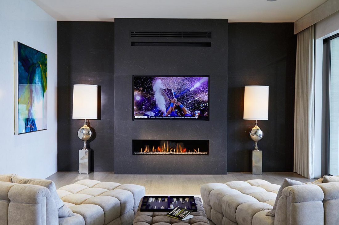I camini della serie Linea si integrano perfettamente nella parete come elementi di design.