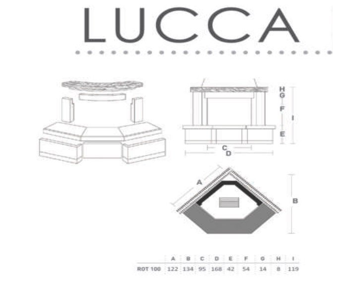 Possibilità di misure e disegni personalizzati e variazione dei marmi/pietre; installazione ad angolo. Il costo va quantificato per ogni modello su misura. Nel prezzo esposto sul sito è escluso il focolare interno, accessori e montaggio.