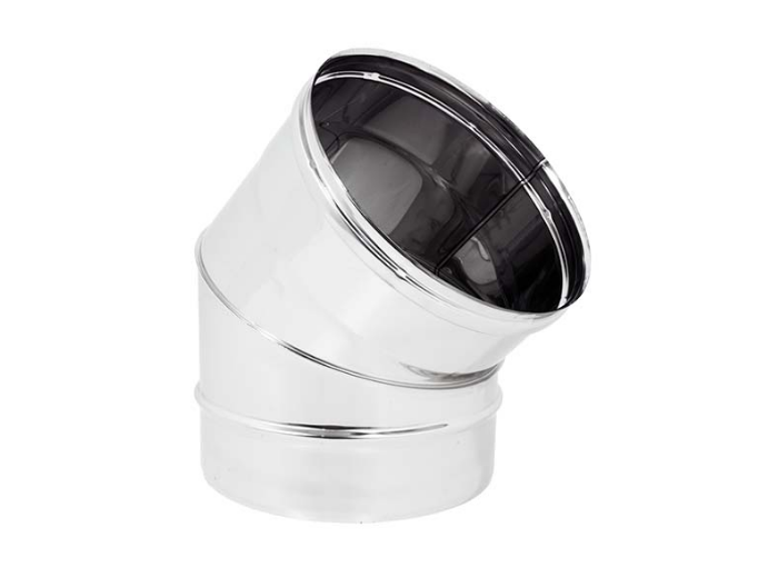 La Curva INOX 45° rappresenta il componente fondamentale per le deviazioni d'asse, dei tratti verticali o sub orizzontali, di un Sistema Camino secondo la UNI EN 1856-1.