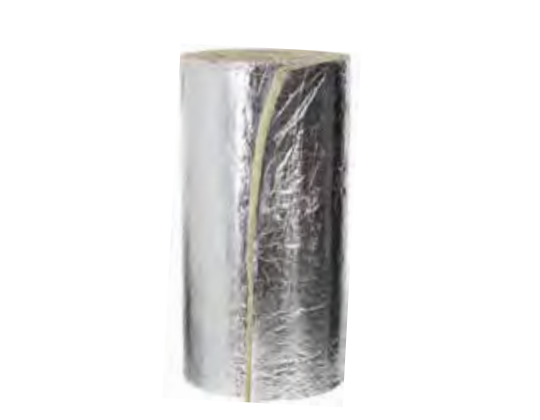 Feltro in Lana di Roccia a bassa densità, non idrofilo. E' costituito da lamelle a fibre, orientate prevalentemente perpendicolari alla superficie e incollate su un supporto in foglio di alluminio retinato, rinforzato con griglia in filato di vetro.