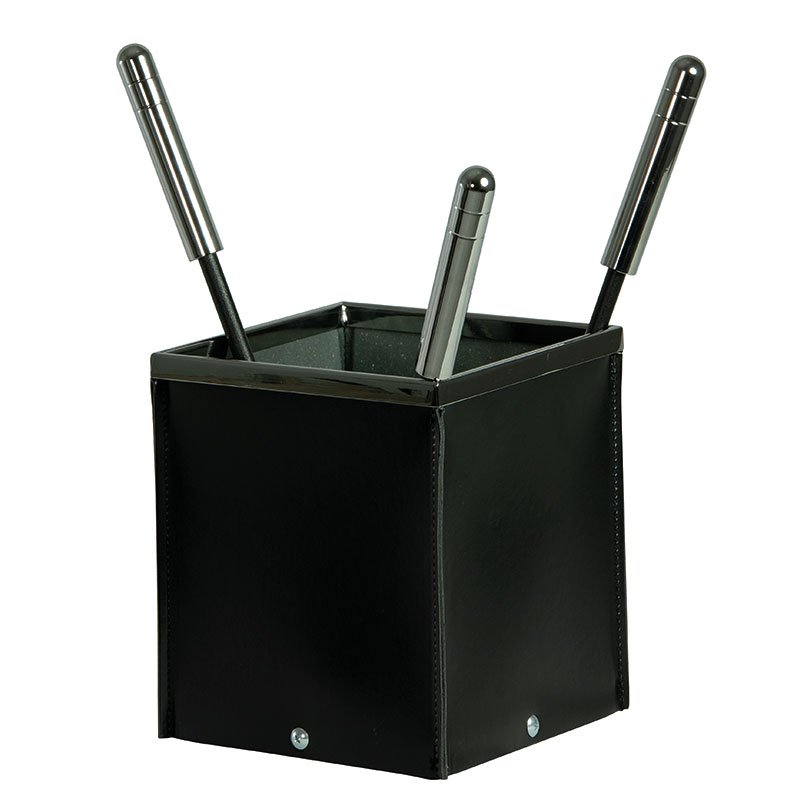 Porta-attrezzi tondo in ECO PELLE nero, 4 accessori Serie: Serie Eco-pelle COD. 50240N Dimensioni: H cm 62 – Ø cm 21 – kg 3,8