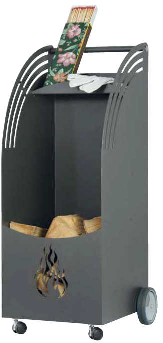 Portalegna Serie: Serie Antracite COD. 60100E Dimensioni: H cm 52 – Ø cm 38 – kg 8,5 con ruoteCapacità = kg 30